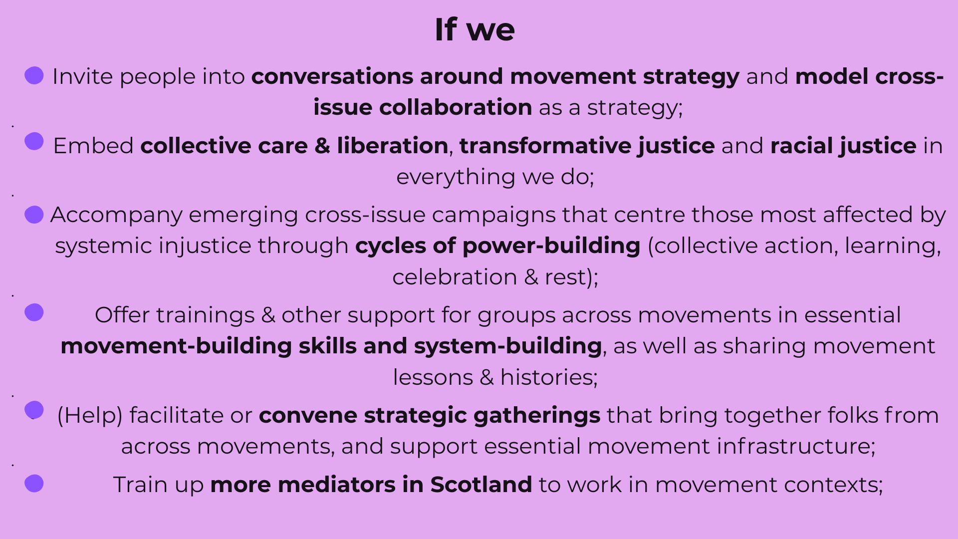 By 2030, Scotland will have a vibrant, diverse, and intersectional social justice movement with a shared strategic vision and increased collaboration.